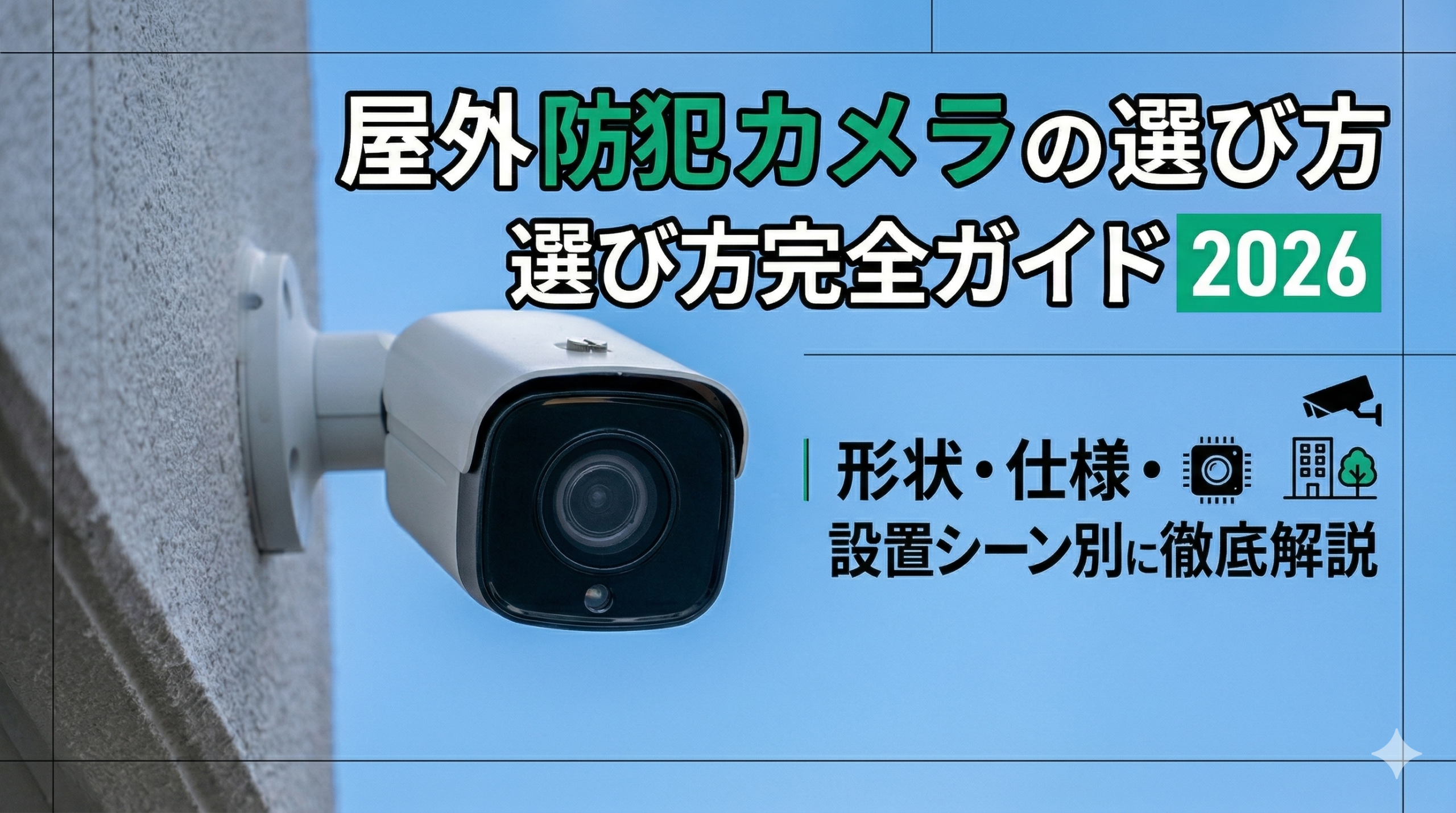 一度にすべての要件を満たす「万能なカメラ」はありません。設置場所ごとの優先課題を明確にして、形状・仕様を組み合わせることが、効果的な屋外防犯の第一歩です。